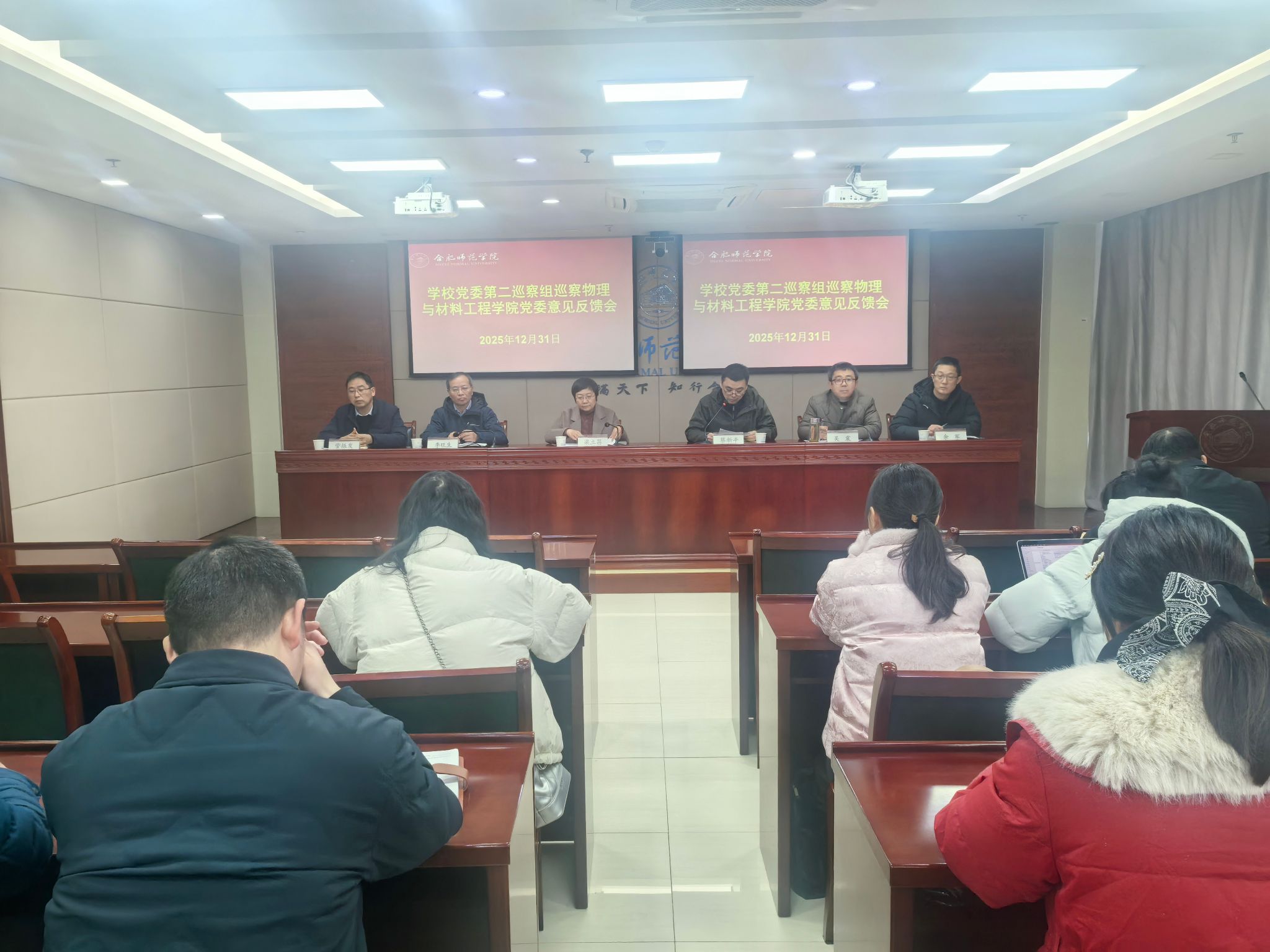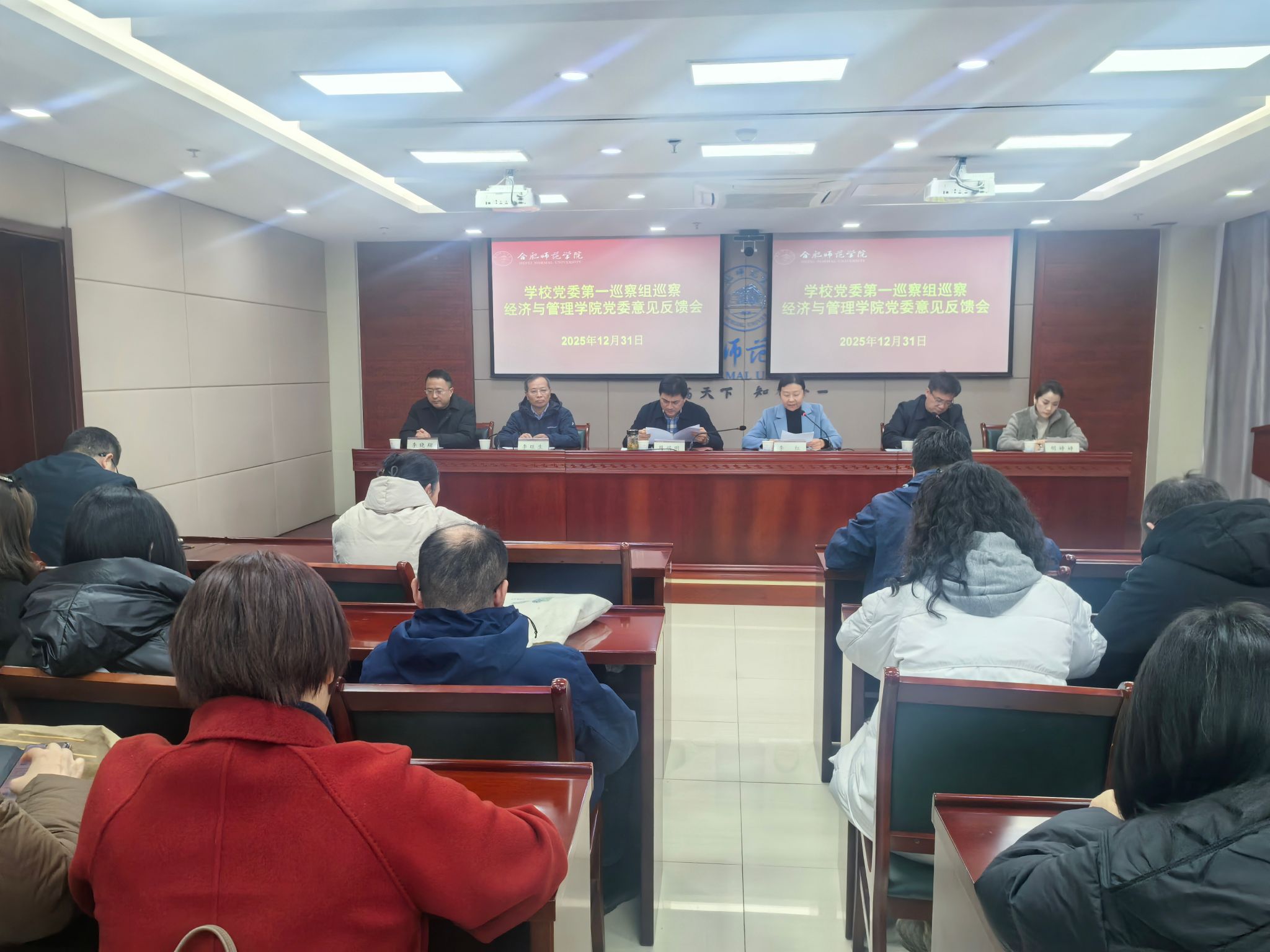 (本网讯)根据学校党委工作部署,2025年12月31日,党委第五轮巡察两个巡察组分别向物理与材料工程学院党委、经济与管理学院党委进行了巡察情况反馈。校党委副书记梁立昌,校党委委员、副校长周端明分别出席会议。